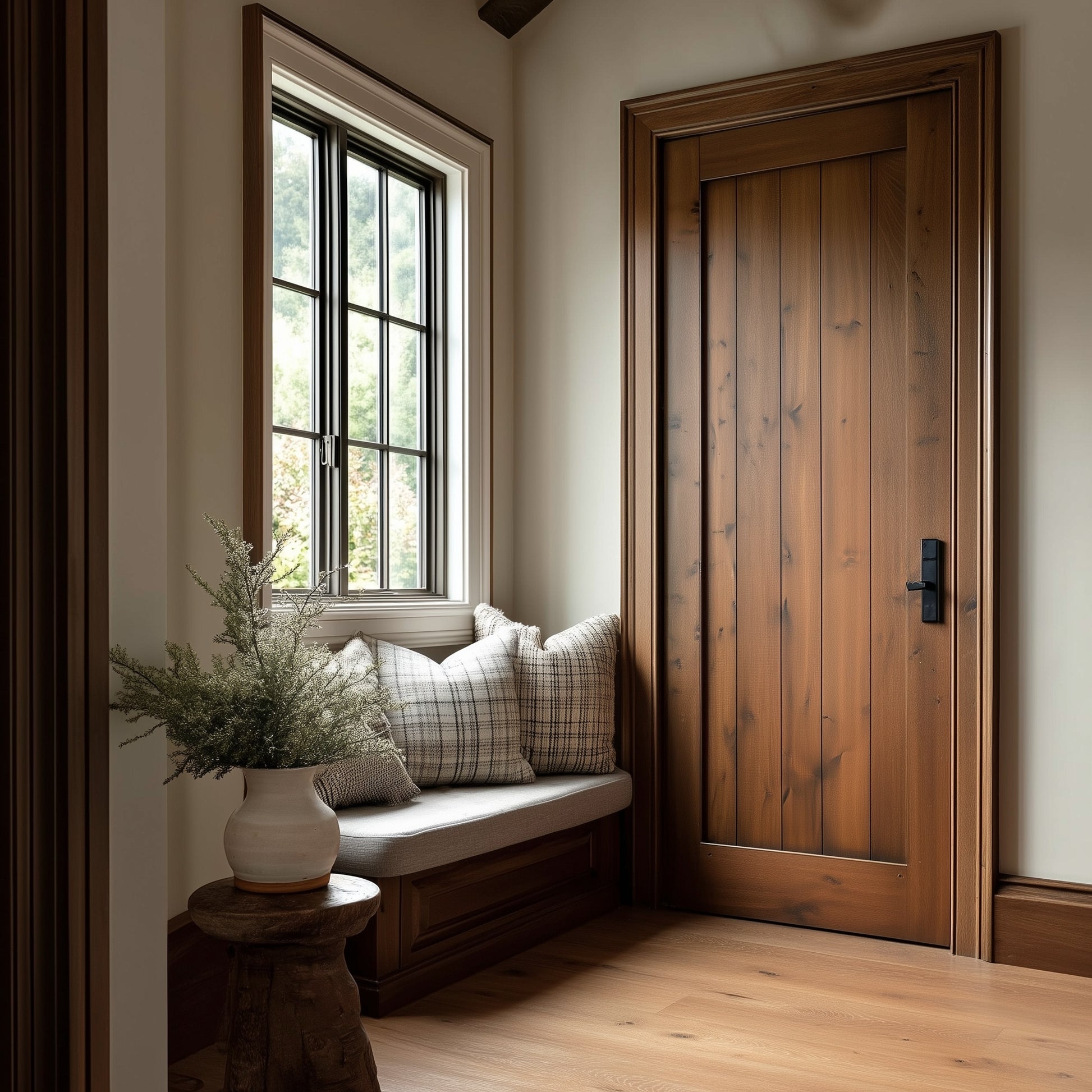 The Theo Door is a timeless option for your home. Made from alder hardwood, it's handbuilt by our team and can be fully customized to fit your home. Enjoy this bespoke, beautiful addition to your home.